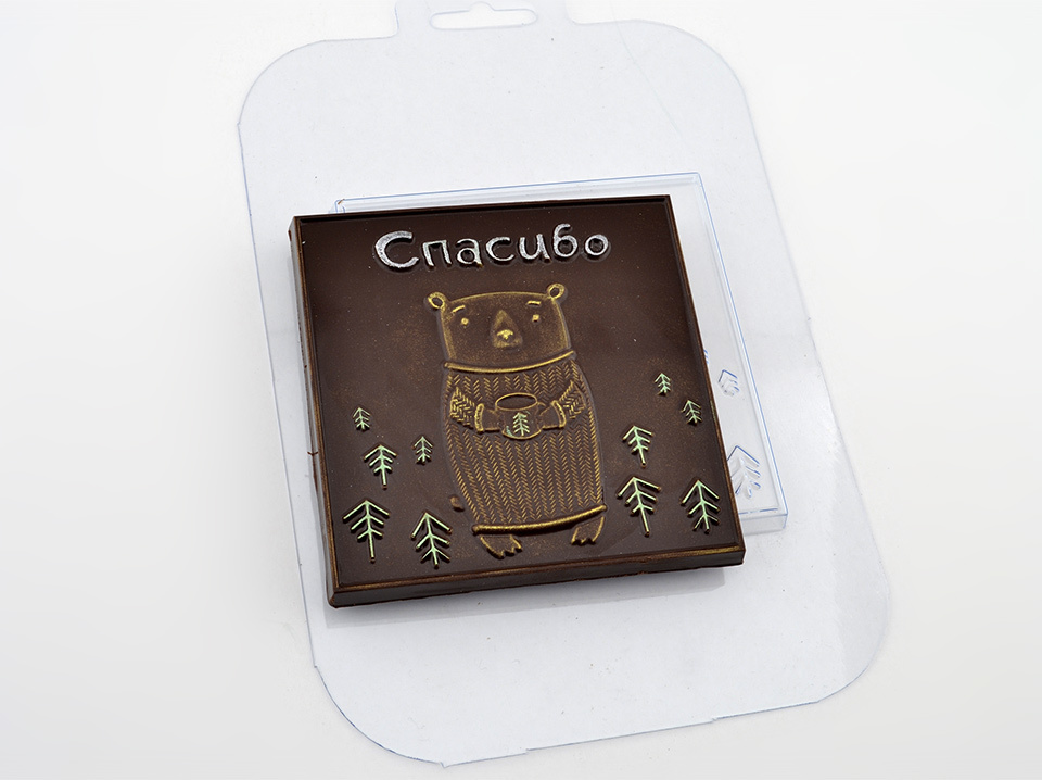 Форма пластиковая Плитка шоколада Спасибо медведь